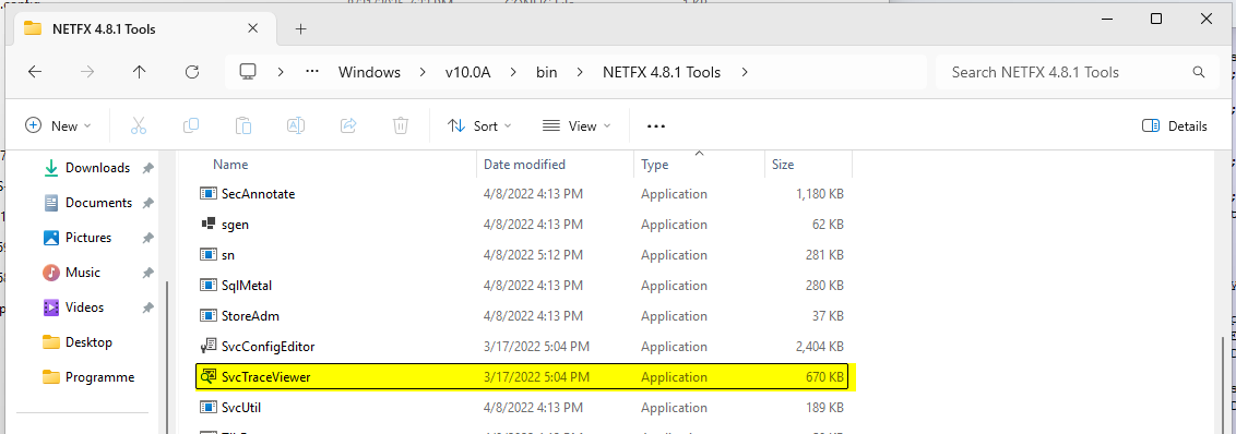 Das Tool wird in “C: \ Programme (x86) \ Microsoft SDKs \ Windows \ Windows \ Windows 4.8.1” gespeichert und wird als SVCTACEViewer.exe bezeichnet.