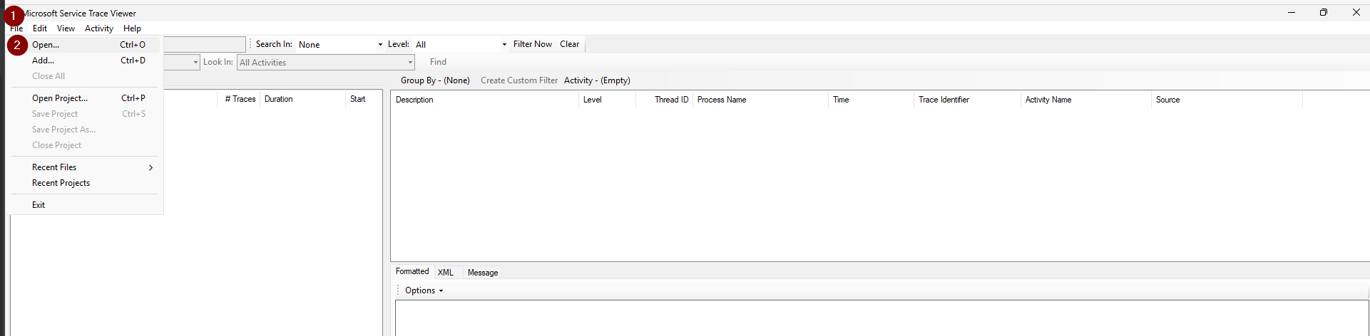 In diesem Fall die WCF -Trace -Datei. Die Funktionalität des .NET -Frame wird verwendet. Microsoft hat auch diese Szenarien dokumentiert. Das Microsoft Service Trace Viewer -Tool steht zur Bewertung zur Verfügung. Dies ist Teil von Windows SDK.